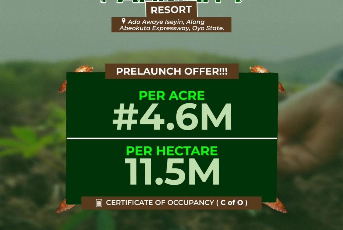 We present to you, Farmcity Resort, Ado Awaye Iseyin, Along Abeokuta Expressway, Oyo State.